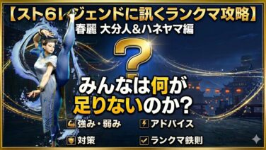 スト6 【スト6レジェンドランクに訊くランクマ攻略】春麗 大分人&ハネヤマ編 前シーズンレジェンドで、多分今シーズンレジェンドで終えそうな人から話を聞いていきます。ぬるっと始めましたがぬるっと終わる見込みです。 はねやま 古来からやってるからあまりスト6的なことを言えないかもしれない。スト4からやってるから、... 2026.04.06 スト6